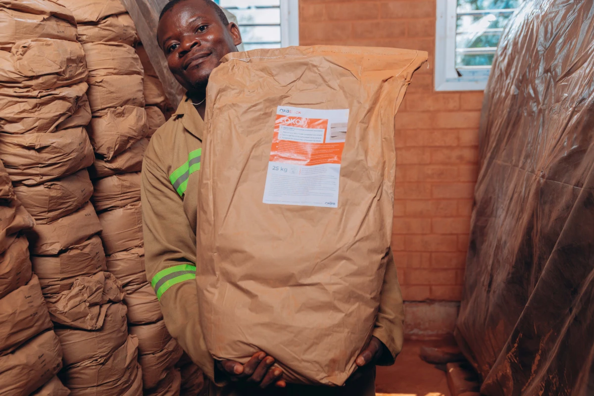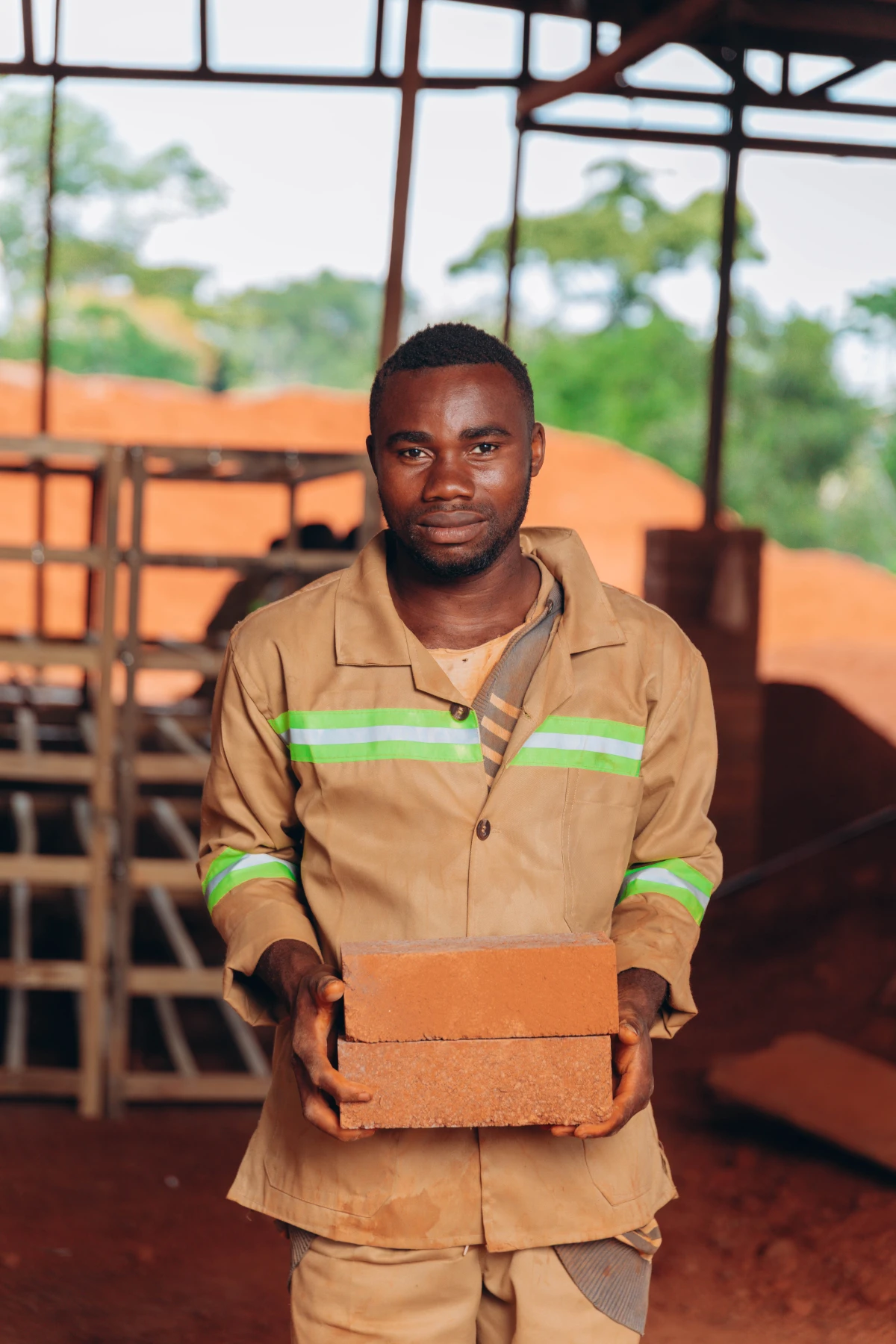 Um die Testergebnisse vor Ort im grossen Massstab zu validieren, wurde eine erste Lieferung nach Yaoundé versandt. Dort liessen sich die Laborergebnisse zunächst nicht reproduzieren. Um diese Herausforderung anzugehen, engagierte Oxara Bernadin Beauderic Kenne Diffo als unabhängigen Berater vor Ort. Bernadin ist Materialforscher und hat Oxara bereits 2020 während seines Doktorats an der ETH Zürich kennengelernt. Da er selbst in Kamerun lebt, bringt er nicht nur wissenschaftliches Fachwissen über erdbasierte Baumaterialien mit, sondern auch Erfahrung mit den lokalen Gegebenheiten und kann so eine Brücke zwischen der in der Schweiz entwickelten Technologie von Oxara und der kamerunischen Lehmsteinproduktion schlagen. Rückblickend schildert er die Situation: “Der Blockproduzent Eco-Brick hatte bereits erste Versuche zur Lehmsteinproduktion mit dem Oxara-Stabilisator unternommen, stiess aber auf Probleme mit den Mischverhältnissen.” Gemeinsam mit Eco-Brick entwickelte Bernadin ein Mischverhältnis, mit dem das Material sowohl die Wasserabsorption als auch die Druckfestigkeit erfüllte.