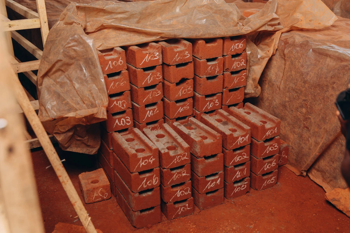 Prior to the construction start Oxara conducted comprehensive earth suitability analyses in Switzerland. It confirmed the viability of the Oxabrick® Loko admixture with the local excavation material. Laboratory-scale trials in Switzerland were validated at full scale on-site in Cameroon by local contractors, demonstrating the practical application of this sustainable technology.